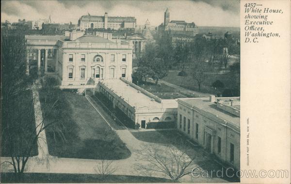 Front: **** ********* 4257- White House, showing Executive Offices, Washington, D. C. SOUVENIR POST CARD CO., NEW YORK. Back: PH -1- TWO CENTS