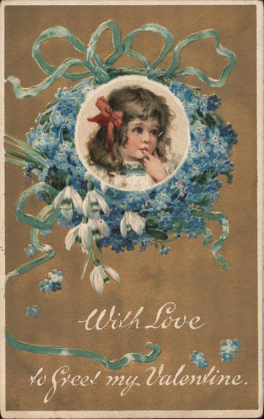 Front: With Love fo to Gree! my Valentine. Back: THIS SPACE MAY BE USED FOR COMMUNICATION Bessie Mac ON THE WRITTEN FER 1.2 830AM N.Y. THE ADDRESS ONYO BE HEGEL FISHE UNITED STA 102 706 FRANKLIN 1757 Miss Lena Barkyle South are City