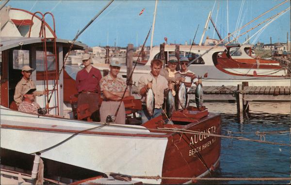 Front: AUGUST! BEACH HAVEN N Back: TUNA FISHING BOATS LONG BEACH ISLAND, N. J. <-"CURTEICHCOLOR" REPRODUCTION FROM KODACHROME OR EKTACHROME ORIGINAL- 35 4C-K1417