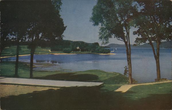 OTESAGA HOTEL Cooperstown, New York. View of Otsego Lake, golf course, and shuffleboard court. A Treadway Inn. H. J. Merrick, Jr.. Manager. "Spectra-Color" HERE