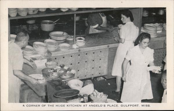 | You are welcome to come into the light and airy kitchen at Angelo's place where savory aromas hint at the delicious sauces and seasonings that make Angelo's food famous. See the platters of spaghetti masked with rich, delicious sauce and crowned with tender slices of chicken or other meats. |