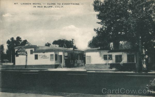Front: MT. LASSEN MOTEL- CLOSE TO EVERYTHING IN RED BLUFF, CALIF. MT. ASSEN ADJOINING LOCKED CARAGES Back: 8. ARTVUS