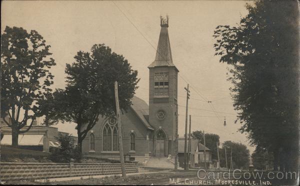 Front: TIMES M.E.CHURCH, MOORESVILLE. IND. Back: Arrived Home Q. K. Pleas send me Your address R.E. Stevens. 10 R.R.I Moodle Ind NERIEN 19902 UNITED STATES OF MERICA 1706 FRANKLIN 1790 Mrs & Mr Fults Andrews ONE CENT