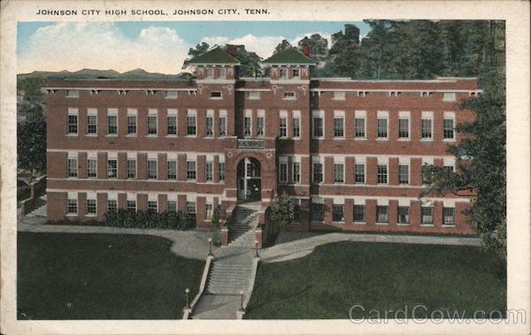 Front: JOHNSON CITY HIGH SCHOOL, JOHNSON CITY, TENN. H Back: PUB. BY KNOXVILLE ENGRAVING CO., KNOXVILLE, TENN. ECHNOR MFD 122485 00 000 BDALITY VIEWS Ε