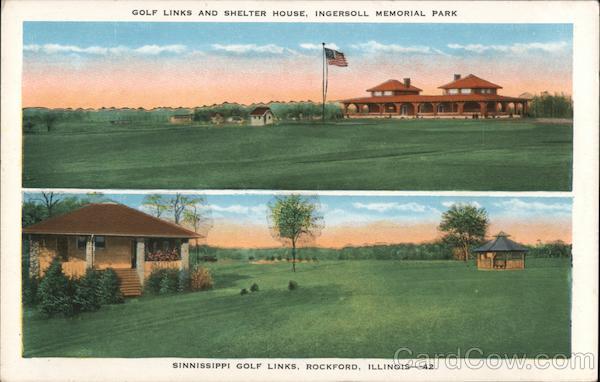Front: GOLF LINKS AND SHELTER HOUSE, INGERSOLL MEMORIAL PARK SINNISSIPPI GOLF LINKS, ROCKFORD, ILLINOIS-42 Back: MADE IN U. S. A. BY E. C. KROPP CO., MILWAUKEE, WIS 100 30896 Co