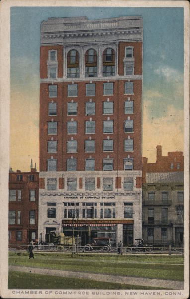 Front: CHAMBER OF COMMERCE BUILDING CHAMBER OF COMMERCE BUILDING, NEW HAVEN, CONN. Back: PUBLISHED BY THE UNION NEWS COMPANY NEW YORK. 2657 CHROME G&S NEW YORK Por Card JUL 26 PM 1914 Vina Mr Louis Fetzer, 75 Pine St., Brooklyn