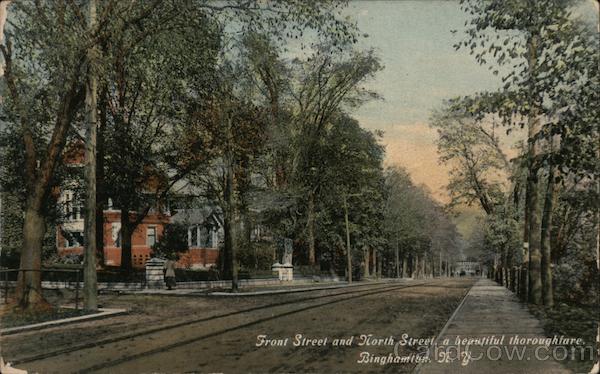 Front: Front Street and North Street, a beautiful thoroughfare. Binghamton, N. Y Back: P ST and Island Possessions Cuba, Canada and i MESSAGE MAY BE WRITTEN ON THIS SIDE. errers Jorres A-15537