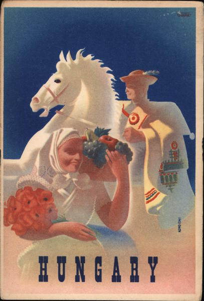 Front: HUNGARY KONECSNI ito S Back: YOU ARE WELCOME IN HUNGARY! 1940 HUNGARIAN NATIONAL OFFICE FOR TOURISM BUDAPEST, IV., VIGADÓ-TÉR 3. Klösz, Budapest. Printed in Hungary.
