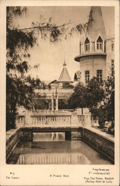 Front: ตะ The lowers A Premier Hotel ***** วังพญาไท พระนคร ผลของกรมรถไฟ) Phya Thai Palace, Bangkok (Railway Hotel de Luxe) Back: Staterails" Series C 6 Gravure Braun & Cie, Paris