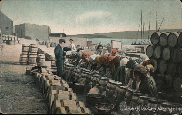 Front: CHOC Lerwick, Packing Herrings. Back: Raphael Tuck & Sons ART PUBLISHERS TO THEIR MAJESTIES THE KIN & Specially Published for H. Morrison & Son, Lerwick, FOR ORGINAS By Appointmen TUC FOST CARD Mut But ARTISTIC SERI TRADE MARK
