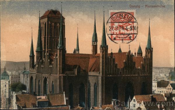 Front: DADD Frag Post Ferie Stag Danzig Marlenkirche t Back: Stengel 22 ms j l.l. l. 2492 bity ho Kansas 995 Walnut S. та Wчи N.. S..A... Mun Holy Thoruscher Weg 2 Tanzig Stengel & Co., G. m. b. H., Dresden. 51220 2+0 Sept 27/19214 Europe