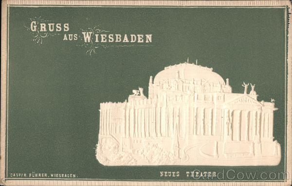 Front: GRUSS AUS WIESBADEN CASPAR FUHRER. WIESBADEN. NEUES THEATER BUSTE & tine Fil Back: 23- An loku in... OSTKARTE. popping HTİHT аkuẩm AQUAD WHO AUCH W BUA Wien namin