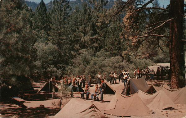 Boy Scouts camping in the giant ponderosa forest of the Southern Sierras at Camp Whitsett. One of the largest Boy Scout camps in the Kern River Valley, located near Johnsondale, California, offering trout fishing, hiking, archery, and other outdoor activities. |