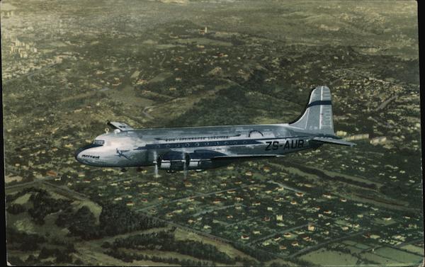 Front: PURISMA 30 ****** Z-AUBO Back: POST CARD/POSKAART South African Airways' Skymaster over Johannesburg. PPLtd. 'n Skymaster van die Suid-Afrikaanse Lugdiens oor Johannesburg.