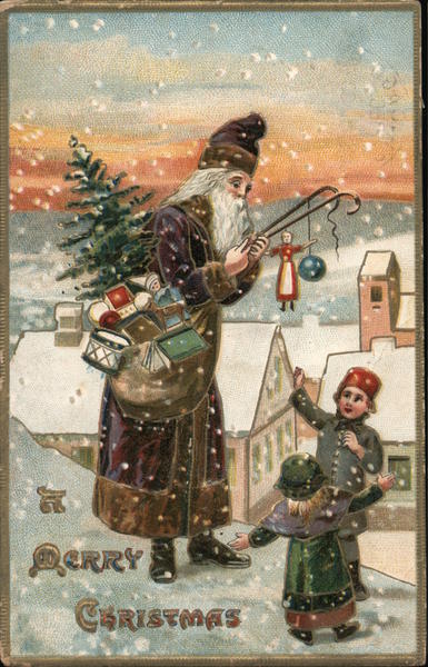 Front: er ERRY CHRISTMAS Back: 07219 не mas merry Kine's & A Happy ment fear. CHICA F3 DEC (19 11-30 MO 1310 ILL Helen Herman. Made in Saxony 0543 LOST FARD p! EL Miss Tillie Bechosek. So. 4324 Ave 1243 bity.