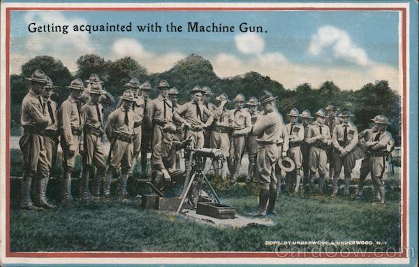 Front: Getting acquainted with the Machine Gun. மரு MA COPY. BY UNDERWOOD & UNDERWOOD, N, Y. Back: 104 Active Army Life 26 Des. لامور THIS SPACE FOR ADDRESS ONLY
