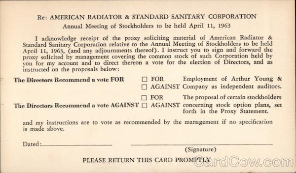 I acknowledge receipt of the proxy soliciting material of American Radiator &