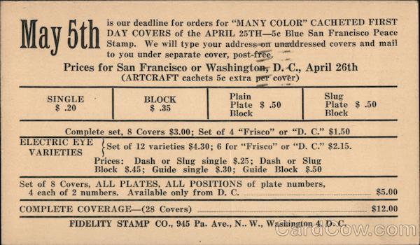 DAY COVERS of the APRIL 25TH-5c Blue San Francisco Peace