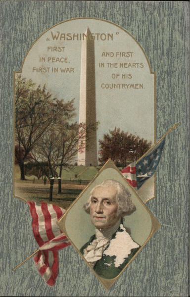 Front: WASHINGTON" FIRST IN PEACE, FIRST IN WAR AND FIRST IN THE HEARTS OF HIS COUNTRYMEN. Back: 00000 000 ON THIS SIDE. PRINTED IN GERMANY