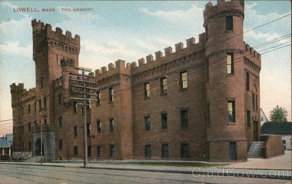 Front: LOWELL, MASS. THE ARMORY. 71 20 UNTIT TIT XXXX Back: Mason Bros & Co., Boston, Mass. No. E. 200 Printed in Germany. Post Card.