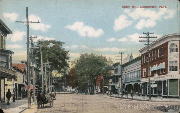 Front: 65209 bet Main St., Lancaster, N.H. TELLE BAILEY BROTHERS BAILEY BLOCK 1899 Back: Pub. by The Atkinson News Co., Tilton, N. H. No. 704 Write Message here. EN Island Mexican 1c. Foreign 2c.