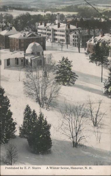 Front: **** Published by E. P. Storrs A Winter Scene, Hanover, N. H. Back: COMMUNICATION FRANWALLOW EST 1904 INC. 1911 es U S PAT OPP EXETER N.H ONA Two Cents