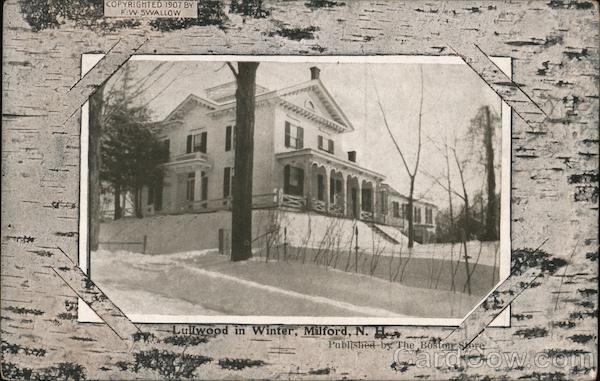 Front: COPYRIGHTED 1907 BY FW SWALLOW AA ZE Lullwood in Winter, Milford, N. H Published by The Boston Store 12 Back: Message allowed in this space. This space is exclusively for the address STAMP