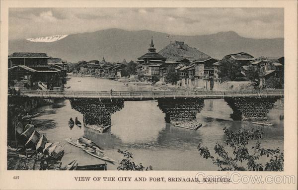 Front: EEOHTE 11111 ISR SERAB 637 VIEW OF THE CITY AND FORT, SRINAGAR, KASHMIR. Back: "The Arch. Photo - Works of India.''