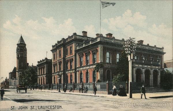 Front: ST. JOHN ST., LAUNCESTON. Back: C ARD British 1 d. Du TASMANIA. 142 d. This space may now be used for correspon- dence to most British possessions. For foreign correspondence the back only.