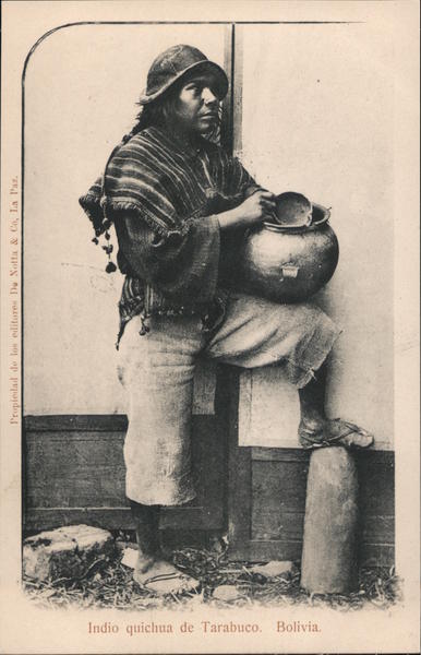 Front: Indio quichua de Tarabuco. Bolivia. Propiedad de los editores De Notta & Co, La Paz. Back: BOLIVIANA. EN , ESTE LADO DEBE ESCRIBIRSE • UNICAMENTE LA DIRECCION