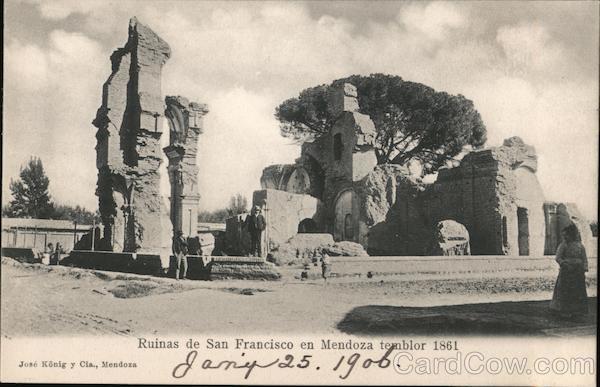 Front: Ruinas de San Francisco en Mendoza temblor 1861 danip25.19ob. José König y Cia., Mendoza Back: Calle Alberdi Monte Caseras. 2014 marzo 1861