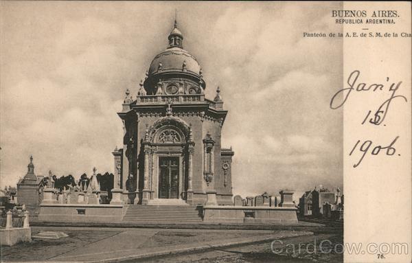 Front: BUENOS AIRES. REPUBLICA ARGENTINA. Panteón de la A. E. de S. M. de la Cha Jamiy 1906. 1281 76. Back: E-cribase en este lado la dirección solamente.