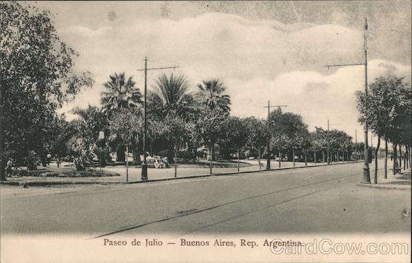 Front: Paseo de Julio - Buenos Aires, Rep. Argentina. Back: Franqueo Interior 4 c. Exterior 6 c. Tarjeta postal. Carte postale. Union postale universelle. 286a Editor R. Rosauer, Rivadavia 571, Bs. Aires. Neg. S. F. A. de Afdos.