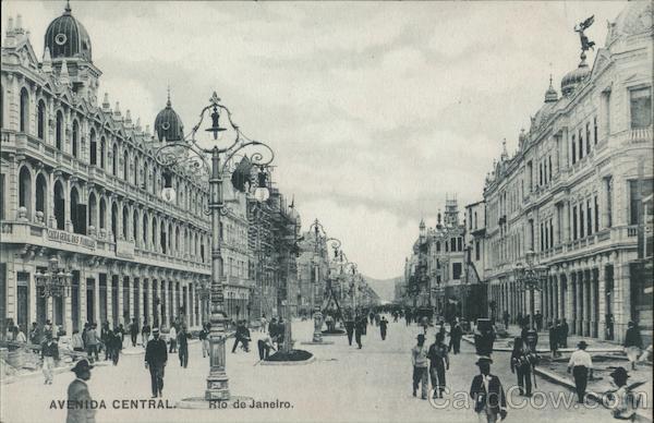 Front: CAIXA GERAL DAS FAMILIAS Rio de Janeiro. AVENIDA CENTRAL. Back: BILHETE POSTAL DO BRASIL Neste lado só o endereço A. RIBEIRO, FABRICANTE-RUA SENADOR ALENCAR, 25-RIO DE JANEIRO.)