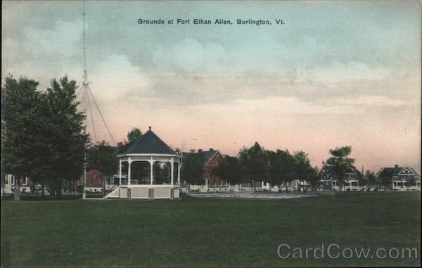 Front: Grounds at Fort Ethan Allen, Burlington, Vt. Back: Published by C. H. Bessey, Burlington, Vt. No. AA 551 ND HAN N.Y. LEIPZIG BERLIN DRESDEN United States, and Island Possessions, Cuba, Canada and For all other Countries Two Cents.