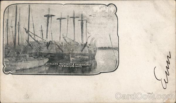 Front: WHALERS ROUSSEAU & DESDEMONA NEWBEDFORD MASS. Сли Back: BOSSELMAN & CO., N. Y. A. 9061 POSTCARE 28-34506 MASS Waveg 1 day t *** UNITED STATES OF AMERICA U Mastro Aldolph Haroux & Highland an pret Zuild mass. 1706 FRANKLIN 1790