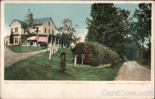 Front: 8154. 11 "THE MAPLES RESIDENCE OF MRS. J. C. R. DORR, RUTLAND, YT. COPYRIGHT, 1904, BY DETROIT PHOTOGRAPHIC CO. Back: HERE, AND CANADA, FOREIGN, TWo CENTS.