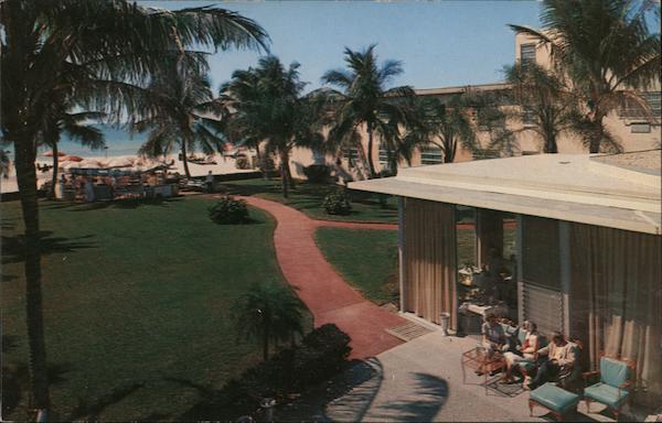 the Side Bettmere e CLUB 32540 100% AIR CONDITIONED on the snow-white sands of Lido Beach, Sarasota, Florida Hannau Color Productions, 605 Lincoln Rd., Miami Beach, Fla. Address