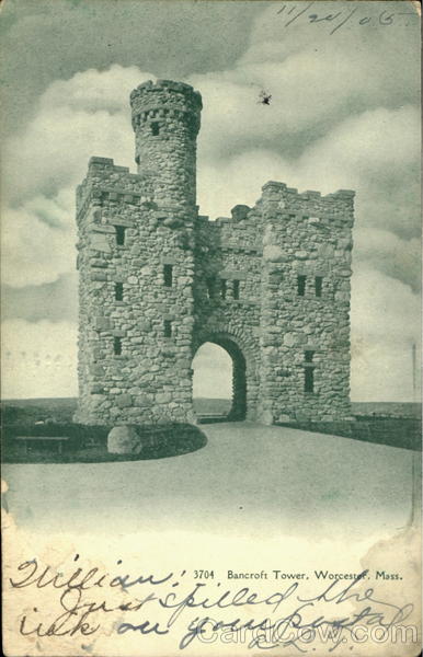 Front: 11/20/06 Wiffian. ▼ 3704 Bancroft Tower, Worcester, Mass. lick on your pro ust spilled the postal Back: 9061 08 AON CESTE UNITED STATES OF 20 1905 1706 FRANKLIN 1790 Mastu Hillain Comine Hafford Springs, Conn