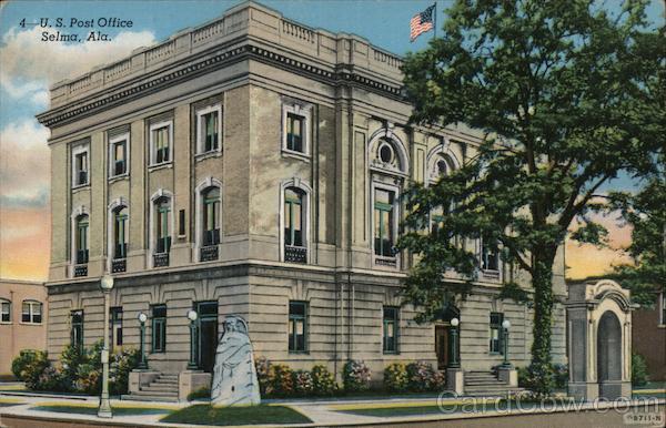 Front: 4 U. S. Post Office Selma, Ala. tttan O8711-N Back: SELMA STATIONERY CO., DISTRIBUTORS, SELMA, ALA. GENUINE CURTEICH-CHICAGO