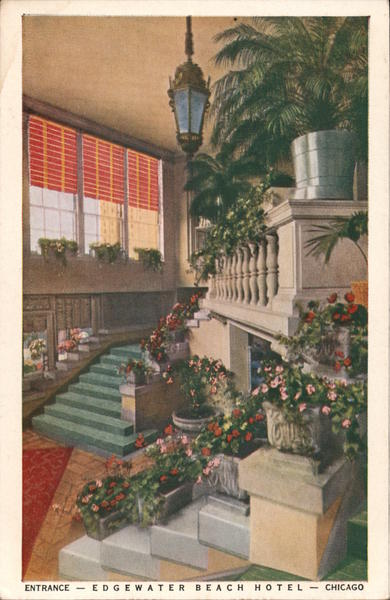 Front: ENTRANCE EDGEWATER BEACH CHICAGO Back: PRINTED BY THE MAX RIGOT SELLING AGENCY, AMERICAN COLORTYPE CO., CHICAGO