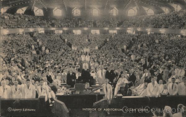 Front: ©ADAMS & BROWN INTERIOR OF AUDITORIUM, OCEAN GROVE, N. J. Back: HISTORICAL SOCIETY W OCEAN GROVE, N.J. 07766 LIBRARY-ARCHIVES SAMUEL STRAUSS CO., BROOKLM NEW YORK