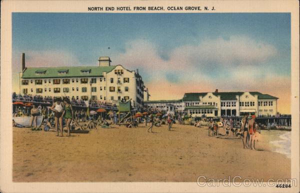 Front: NORTH END HOTEL FROM BEACH, OCEAN GROVE, N. J. EE ELEE** *** 46284 Back: 7.25 Published by Samuel Strauss Co., Brooklyn, New York IN