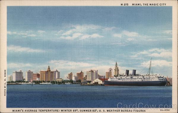 MIAMI'S AVERAGE TEMPERATURE: WINTER 69°, SUMMER 82°, U. S. WEATHER BUREAU FIGURES