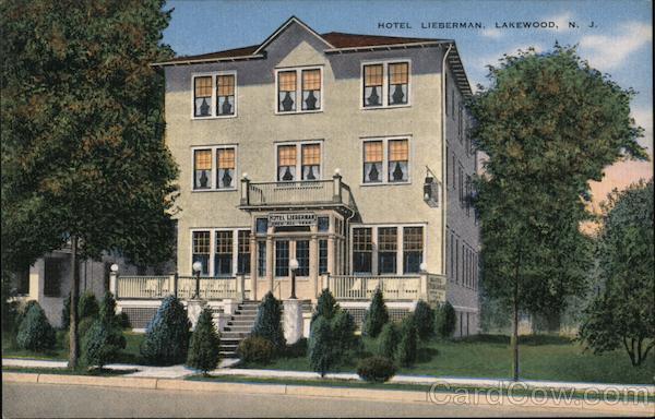 Front: HOTEL LIEBERMAN, LAKEWOOD, N. J. HOTEL LIEBERMAN OPEN ALL Back: 20969 HOTEL LIEBERMAN “Where Every Guest is a Satisfied Friend” PHONE 814 MADISON AVENUE LAKEWOOD 1462 LAKEWOOD, N. J. K K Со -PUB. BY I. ROTHSTEIN, LAKEWOOD, N. J.-