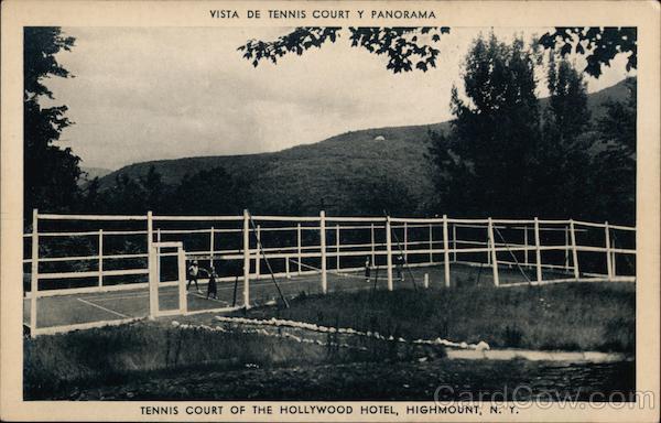 Front: VISTA DE TENNIS COURT Y PANORAMA TENNIS COURT OF THE HOLLYWOOD HOTEL, HIGHMOUNT, N. Y. Back: / you PHOTO-GLOSS ICARDI VIEW sod CO.) 77903 ONI