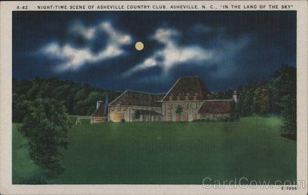 A-42 NIGHT-TIME SCENE OF ASHEVILLE COUNTRY CLUB. ASHEVILLE. N. C., "IN THE LAND OF THE SKY" E-7886
