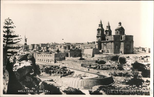 Front: MELLIEHA MALTA. vi Back: Copyright: THE A.B.C. PHOTOGRAPHIC DEPT. South Street, Valletta. SENDING YOU GREETINGS Valentine's THIS IS A REAL PHOTOGRAPH GT. BRITAIN FOR ADDRESS ONLY