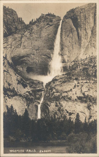 Front: YOSEMITE FALLS. 2600 FT. Back: CAMP CURRY STUDIO IN THE YOSEMITE NATIONAL PARK A z o. 4 NO ▸ 2. STAMP = VAZO