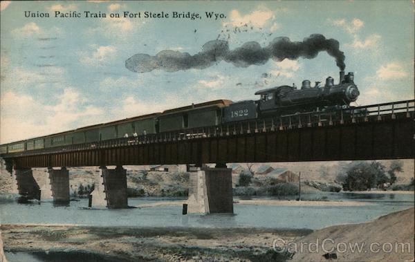 Union Pacific Train on Fort Steele Bridge, Wyo.